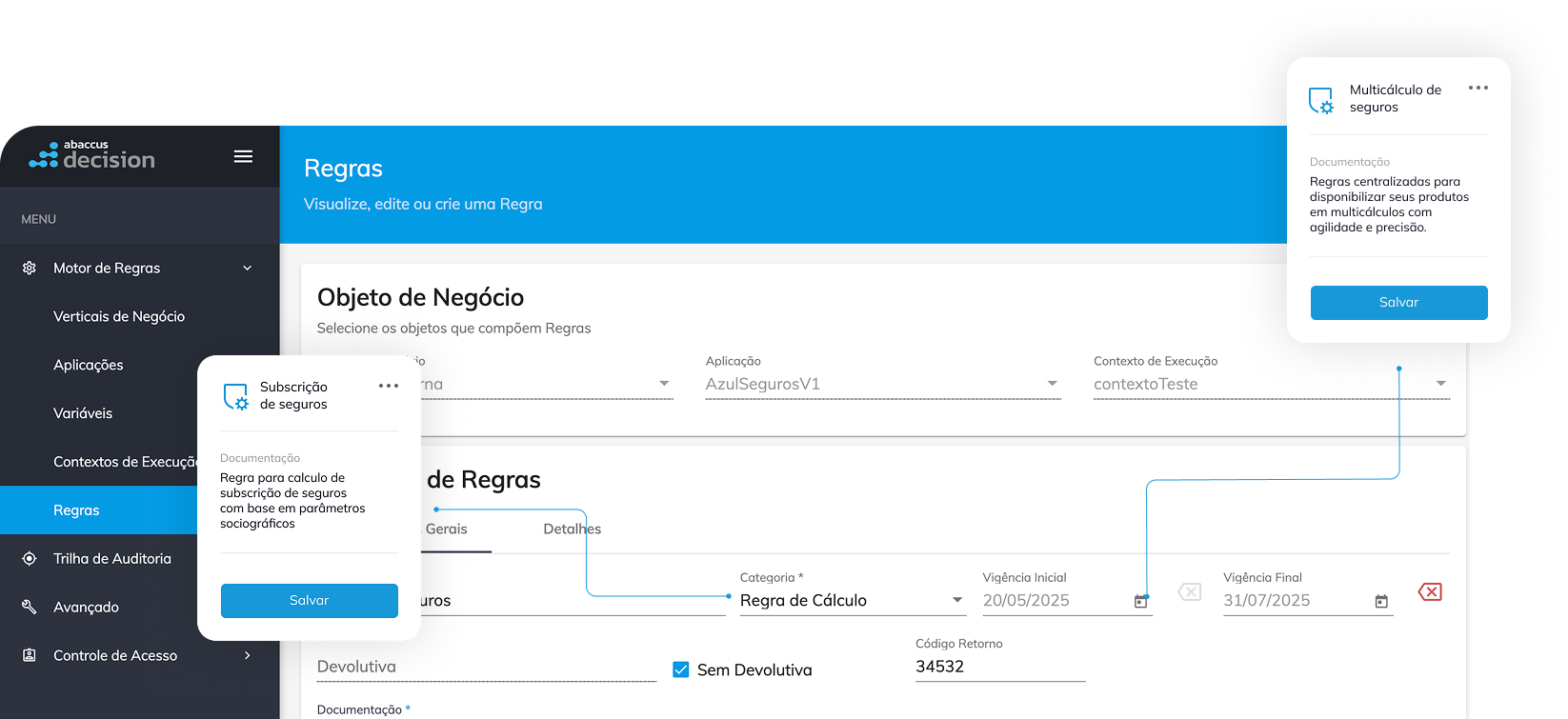 A Abaccus centraliza suas regras (auto, vida, viagem, saúde, residencial)